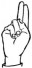 На ћирилици написано ЕВГЕНИЈЕ СИМАНИЋ састоји се из 15 слова [?]. Исписано ћириличном једноручном азбуком за глувонеме: